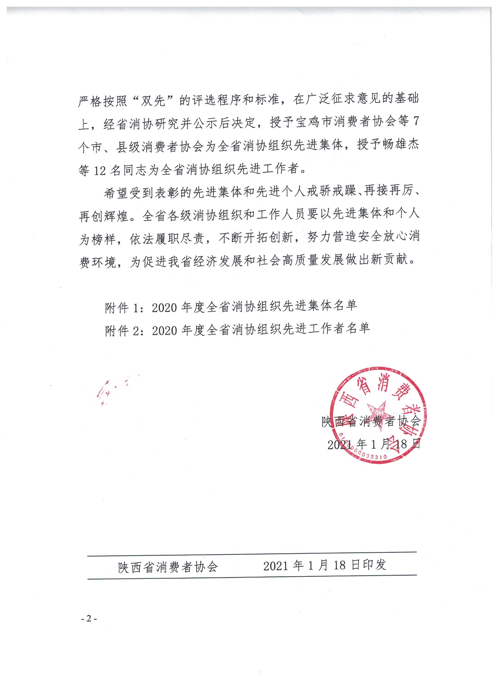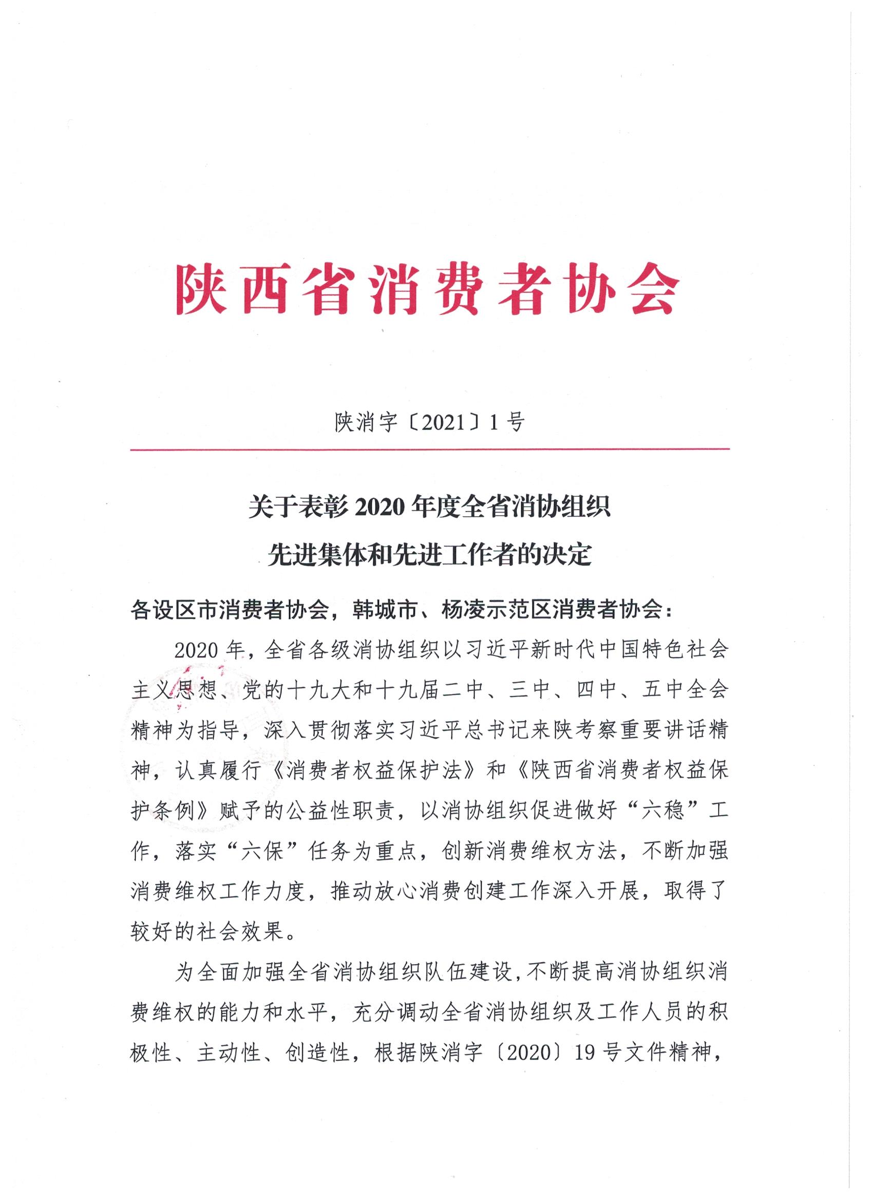 关于表彰2020年度全省消协组织先进集体和先进工作者的决定