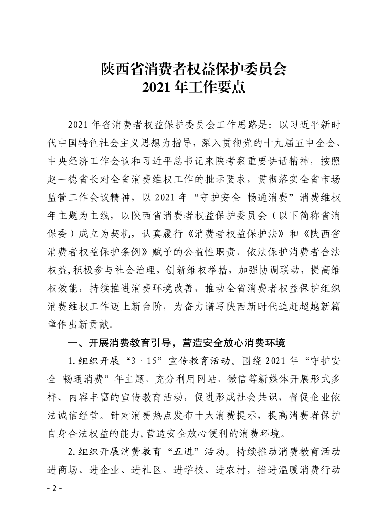 陕西省消费者权益保护委员会关于印发2021年工作要点的通知
