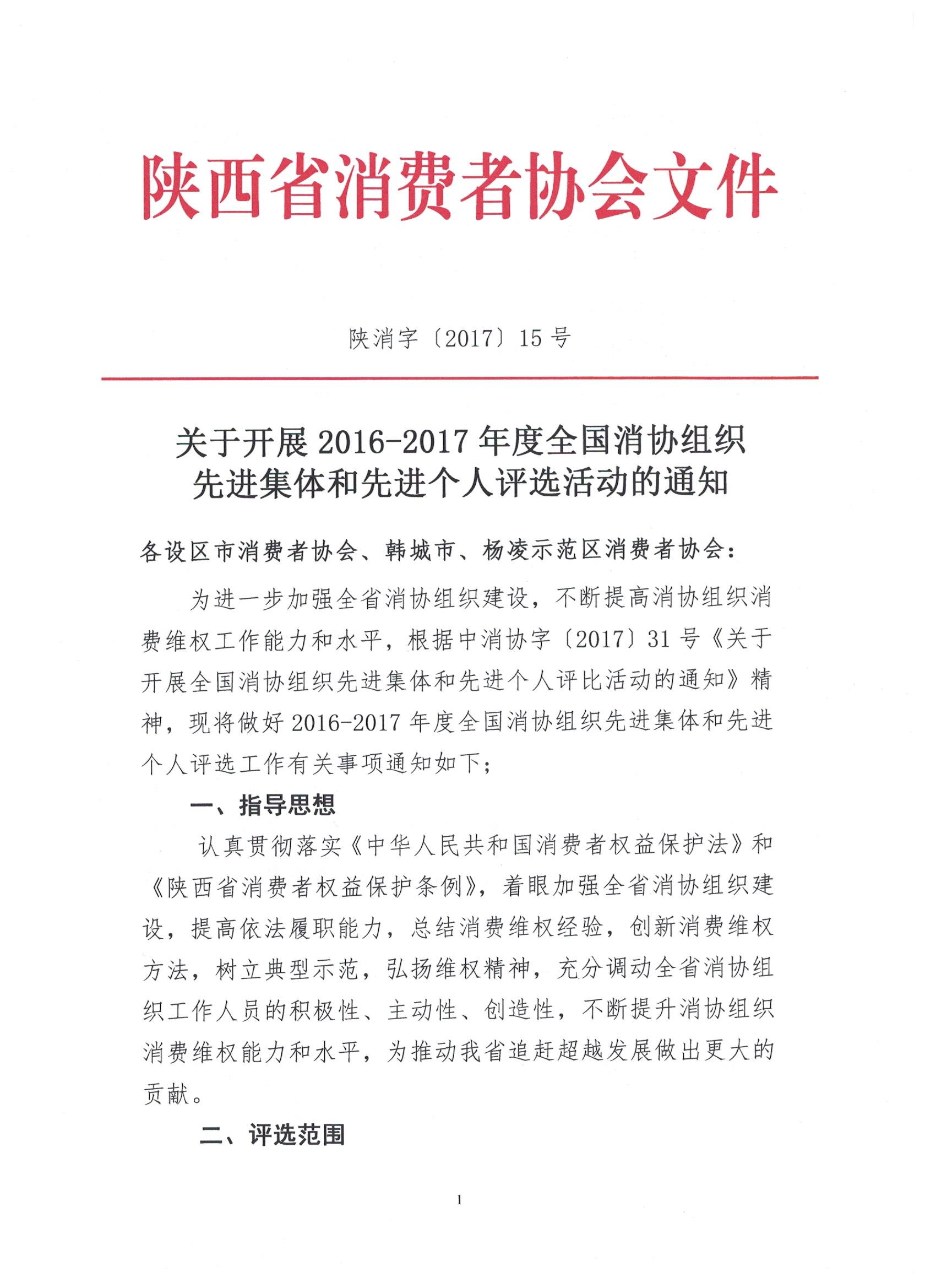 关于开展2016-2017年度全国消协组织先进集体和先进个人评选活动的通知 | | 发布时间:2017-09-11 00:00:00 附件一附件二 扫一扫在手机打开当前页 【打印正文】 【复制链接】 分享让更多人看到 推荐文章