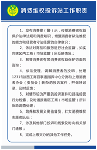 “消费维权投诉站”应设置在乡镇、街道办工商(市场监管)所办公场所,相对固定,在显著位置悬挂“XX市XX县(区)XX乡(镇、街道办事处)消费维权投诉站”匾牌,内部墙壁悬挂工作职责、工作流程,各村委会、社区(居委会)、集市等场所醒目位置悬挂消费维权投诉提示牌。全省统一“消费维权投诉站”匾牌、提示牌和室内职责栏、工作流程规格样式,工作文书、宣传栏暂不作规范,承制建设由市、县实施。