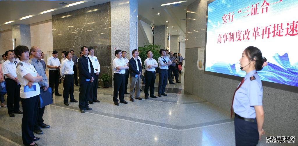 与会代表首先赴西咸新区沣东新城政务大厅现场观摩,实地查看“三证合一”改革登记模式、工作流程、平台运转等情况,认真听取“三证合一”改革情况介绍。随后,在陕西大会堂召开“三证合一”改革总结部署会。省政府副秘书长张小宁主持会议。省工商局、省质监局、省国税局和省地税局负责同志分别发言。副省长王莉霞出席会议并讲话。