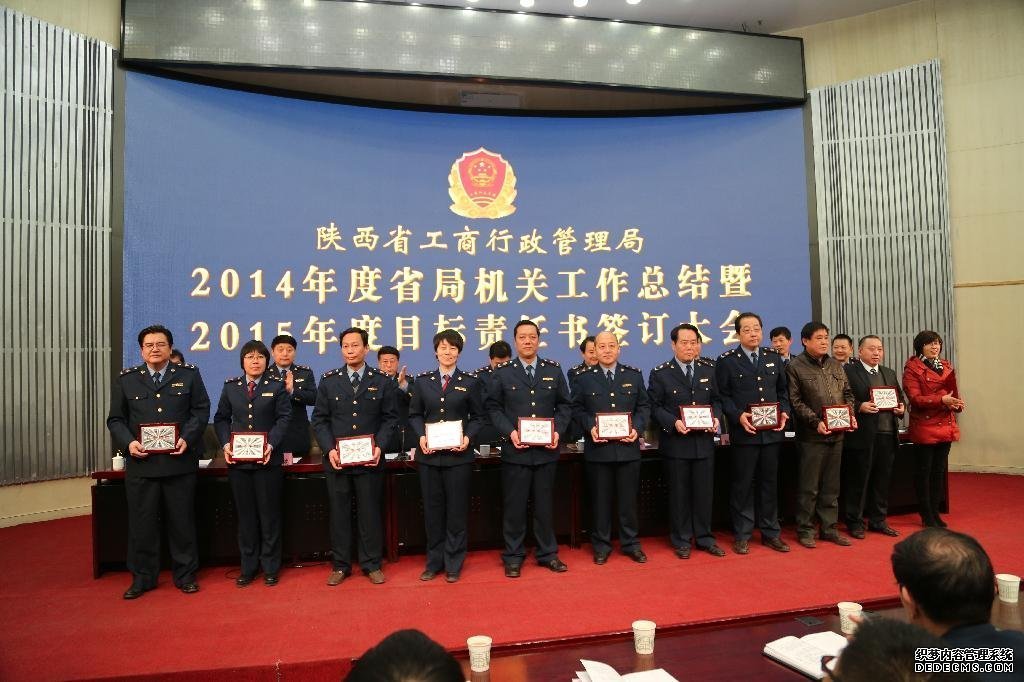 2月12日,省局召开机关处室、事业单位全体干部大会,总结2014年度工作,表彰优秀单位和优秀工作人员,部署2015年度工作任务。省局党组书记薛华主持会议,局长王吉德作重要讲话,副局长田中智宣读表彰通报,局领导向2014年度优秀单位和优秀工作人员颁发奖励证书,机关各处室、各直属事业单位负责同志签订2015年度目标责任书。 王吉德局长在会上作了题为《引领新常态,勇作主力军, 深入推进工商行政管理事业创新发展》的重要讲话。王吉德局长指出,一年来,全省工商系统坚决贯彻党中央、国务院和省委省政府的决策部署,攻坚克难,狠抓落实,各项工作取得显著成效:一是商事制度改革取得新突破,二是商标广告战略取得新发展,三是服务发展取得新进展,四是市场监管取得新成绩,五是消费维权取得新进步,六是队伍素质取得新提高,七是基层建设取得新提升,八是外部环境进一步优化。 王吉德局长要求,2015年全省工商行政管理系统认真贯彻落实党的十八大、十八届三中、四中全会、中央经济工作会议、全国工商行政管理工作会议、省委十二届六次全会和赵正永书记视察工商工作重要讲话精神,主动适应经济社会发展新常态,积极引领市场监管工作新常态,全面深化商事制度改革,全面推进依法行政,全面服务新起点建设,全面提升履职尽责能力,努力在改革中实现工商行政管理事业创新发展,为“三个陕西”建设作出新的贡献。