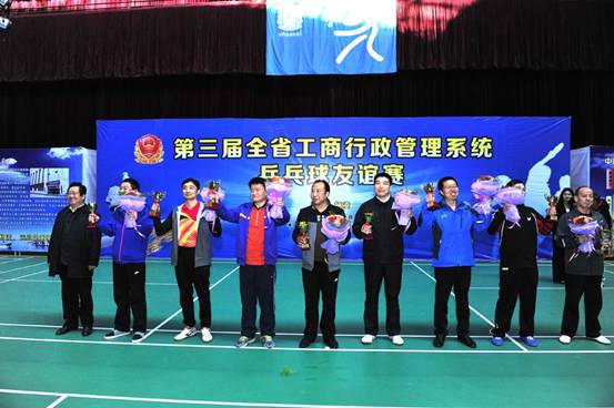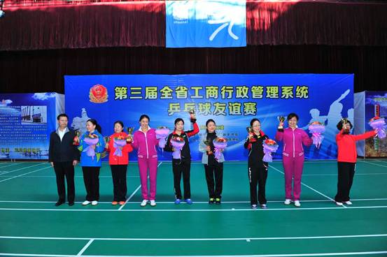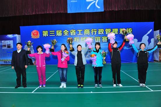 比赛结束后,省工商局局长王吉德、副局长郑成瑞以及杨凌示范区工商局局长付永涛、纪检组长王宏为获奖运动员及代表队颁奖。省工商局机关党委专职副书记王建民代表省工商局对取得优异比赛成绩的代表队和个人表示热烈祝贺,对杨凌示范区工商局精心组织此次比赛表示衷心感谢,并宣布全省工商系统第三届乒乓球比赛圆满落幕。