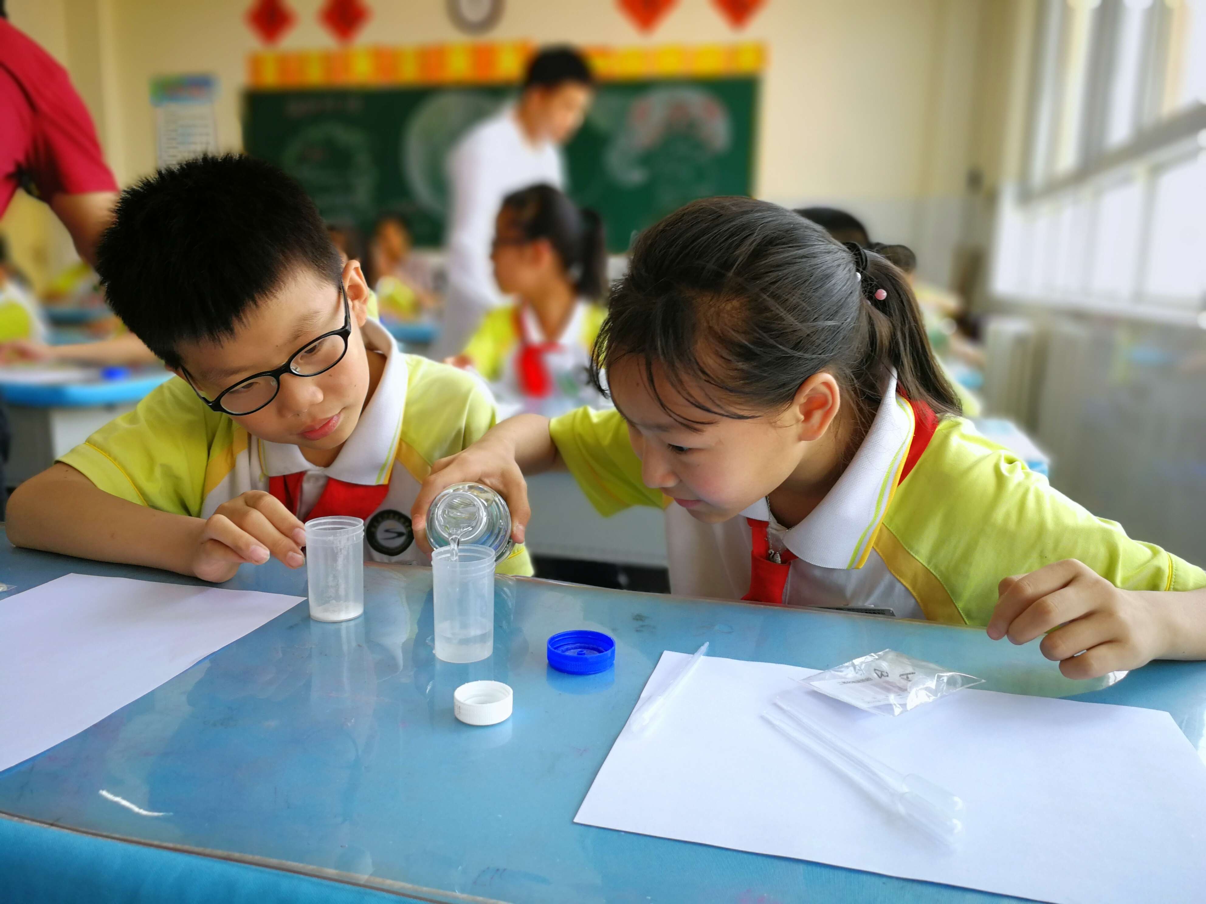 在“儿童食品安全知识课堂”上,由陕西CEC食品安全消费者体验中心的专业人员为浐灞丝路小学的孩子们带来了一节题为“不要让'美白'食品成为健康杀手”食品安全课,让孩子们在快乐、轻松的氛围中学习到了食品安全知识,了解“美白”食品存在的原因,并在现场对新购的莲子、冰糖等食品运用“食品快速检测包”对“美白”食品进行快速测试,实验检测的内容为食品中二氧化硫的含量,实验通过样品溶液与实验试剂发生反应,产生紫红色物质,颜色越深说明含量越多,通过比色卡鉴别含量多少,最终让孩子们更清楚了解到“美白”食品对人体健康的伤害,也让孩子学会如何鉴别优质健康的食品。