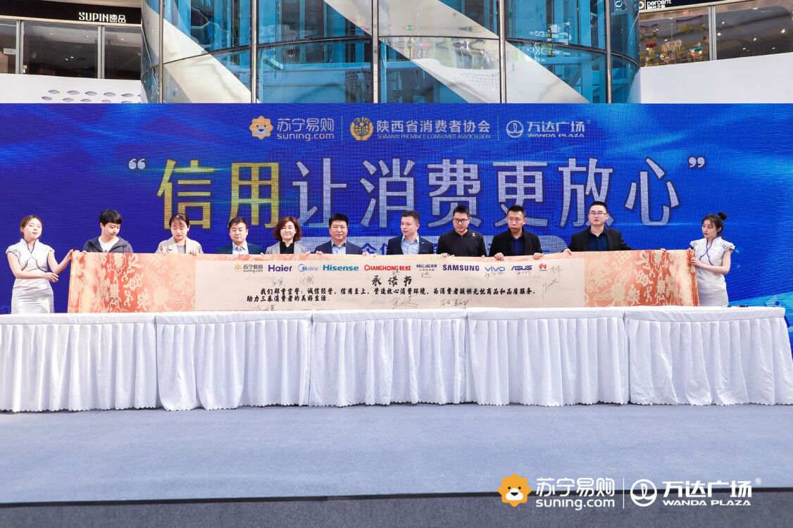 在活动现场,苏宁易购联合多家企业共同签订了信用承诺书,向广大消费者做出郑重承诺:“诚信经营,信用至上,营造放心消费环境,为消费者提供无忧商品和品质服务,助力三秦消费者的美好生活”。