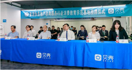 为广大消费者学习和了解房地产消费知识提供咨询服务的平台,省消费者协会房地产咨询服务行业消费教育示范基地7月15日在陕西贝壳闹海房地产经纪有限公司设立,填补了我省消费教育示范基地在房地产消费领域的空白。省消协、贝壳闹海有限公司、消费教育示范基地等60余人参加了授牌仪式。