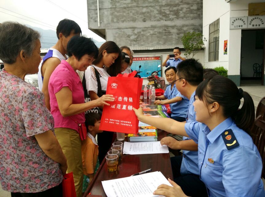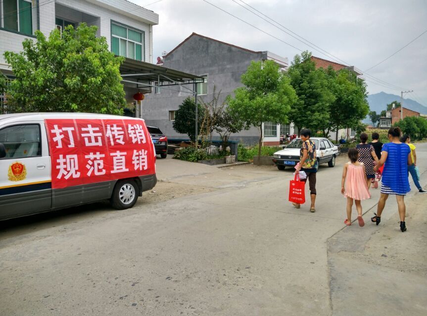 2015年8月7日8:30分,车身贴着“打击传销规范直销”八个大字的工商执法车开进了枞岭村部,身着工商制服的6名工商干部提着宣传彩页、环保袋等物品,神采奕奕的走进了涧池镇枞岭村社区服务中心。