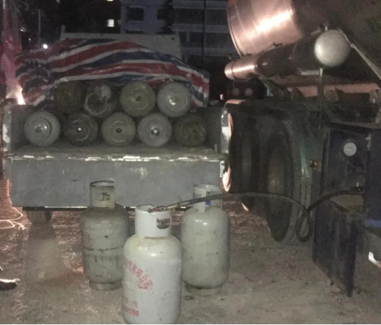 经过45天摸排,延安市场监管局执法人员在宝塔区河庄坪镇某宾馆停车场内成功捣毁一流动式非法充装液化石油气和“黑气瓶”流转窝点。