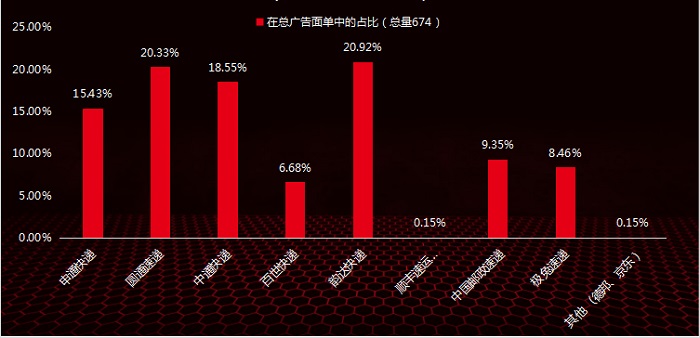 各快递公司面单广告在自身样本中的占比