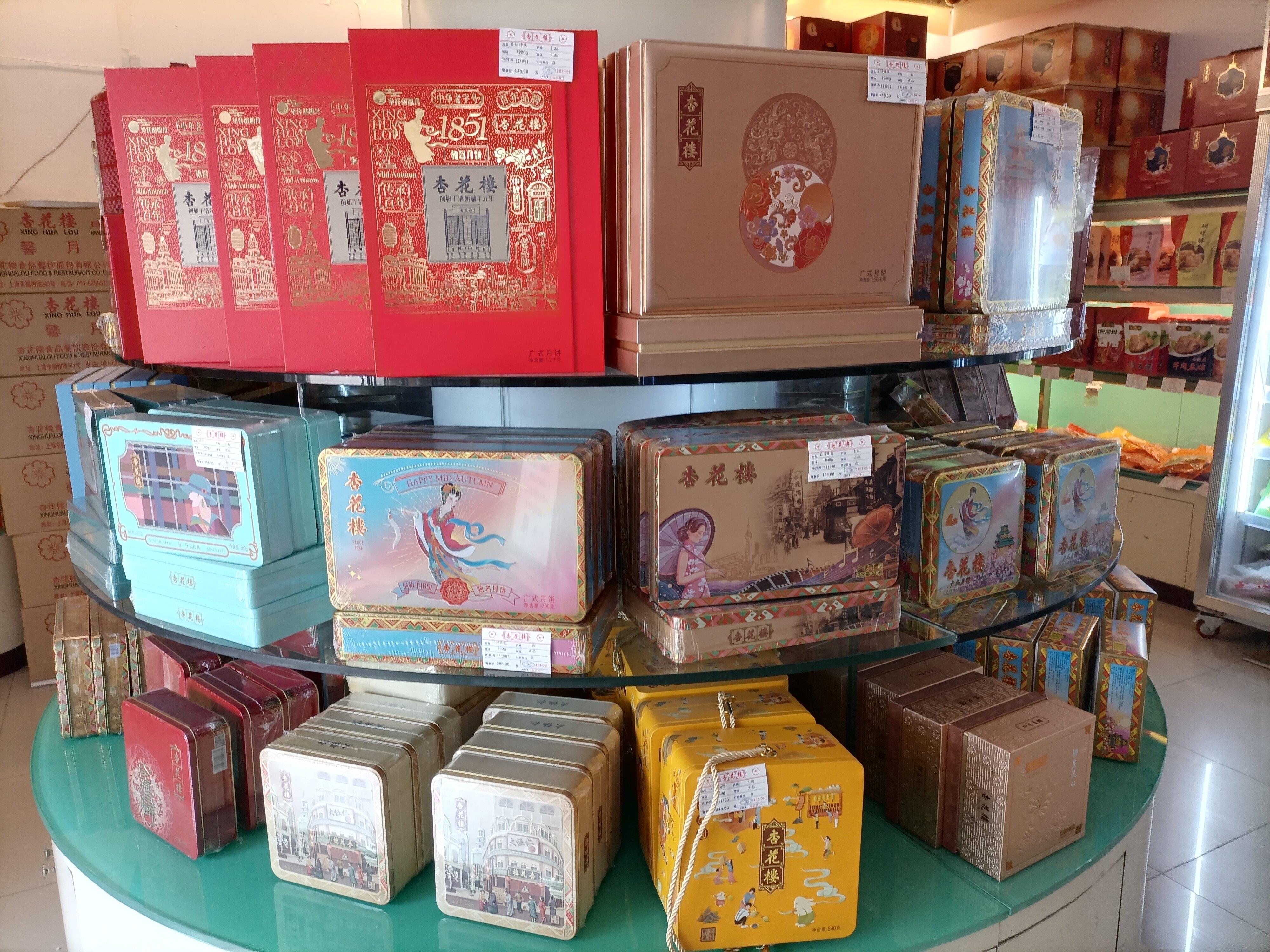 杏花楼店内中山南二路店月饼礼盒样式丰富。刘浩/摄