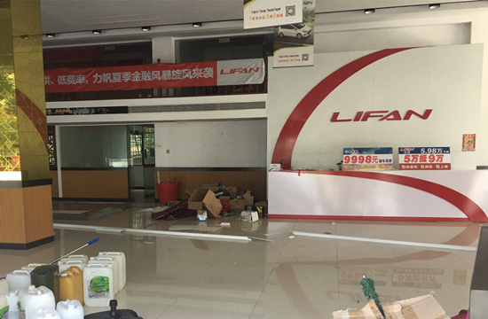 6月3日,记者来到位于常德市鼎城区龙港路的属于天游公司的一老一新两家4S店,两家店都已人去楼空,老店一片狼藉,只有散落在地面和墙体上的促销广告让人想起这里曾经有过的火爆销售场面。而千米开外的新店尤显豪华气派,但偌大的展厅只有两辆力帆展车还摆放在那里。