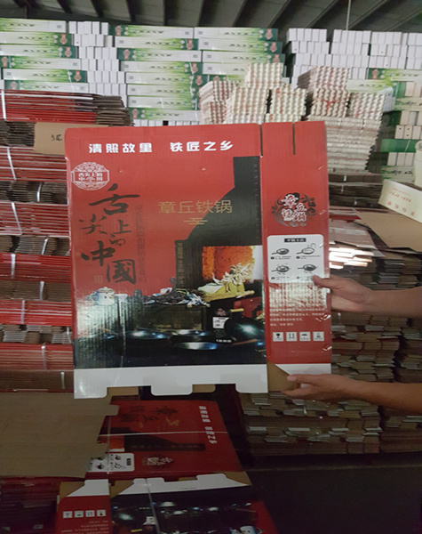 章丘市宏运纸箱厂私自印制的涉嫌侵权的包装。王照重摄