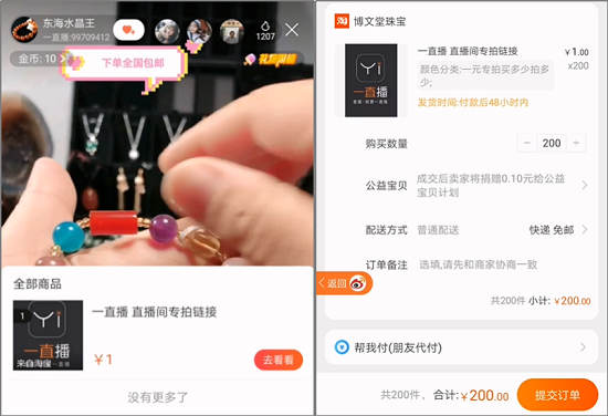 ▲前为微博直播商品信息,后为淘宝购买商品信息