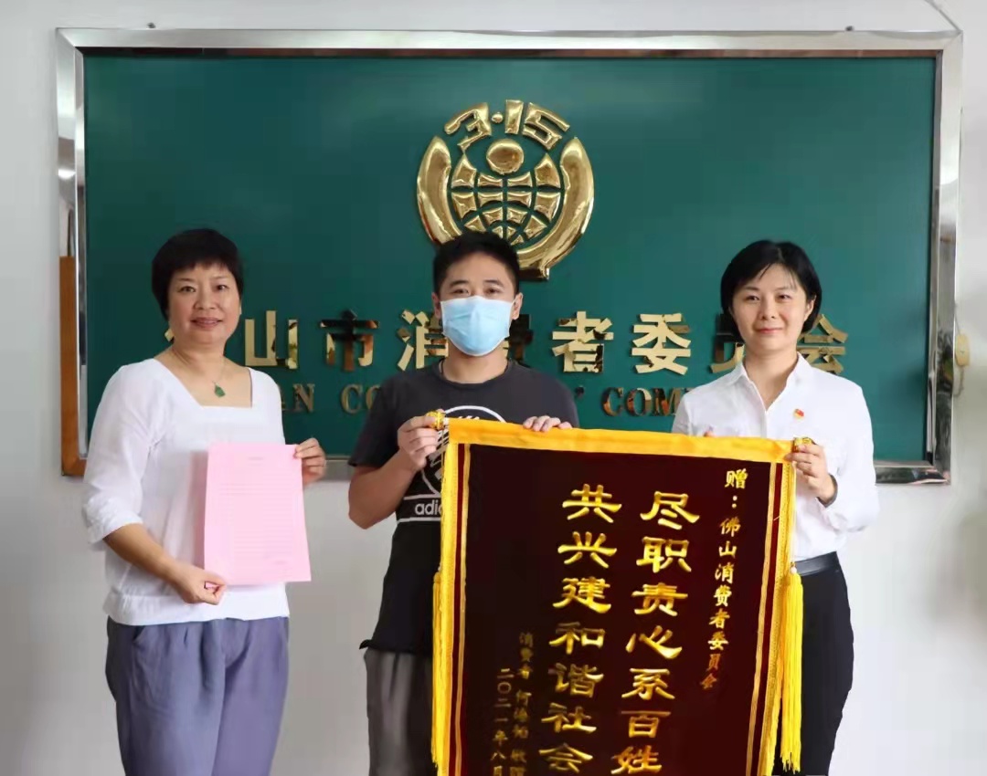 9月2日,何先生来到佛山市消委会,给佛山消委会送上了锦旗和感谢信。