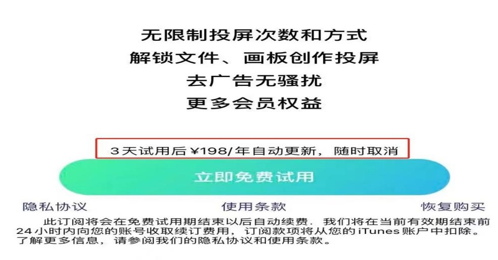 1月17日,尚女士用苹果手机投屏电影时,发现不能像往常一样投屏至电视,就在百度上搜索“投屏软件”等字样,了解到一款极光投屏软件。随后,她在苹果应用商店搜索并下载了名为“极光投屏-tv投屏手机无线投屏助手”的软件,可是软件无法使用。她又下载了名为“极光投屏高级专业PRO版本”的软件,依旧无法使用而且还闪退。本以为事情到此为止,可3天后,尚女士在支付宝账单中发现两笔268元的苹果商城扣款记录。她先后拨打的支付宝和苹果中国的售后电话都没能帮她挽回经济损失,便向消保委求助。