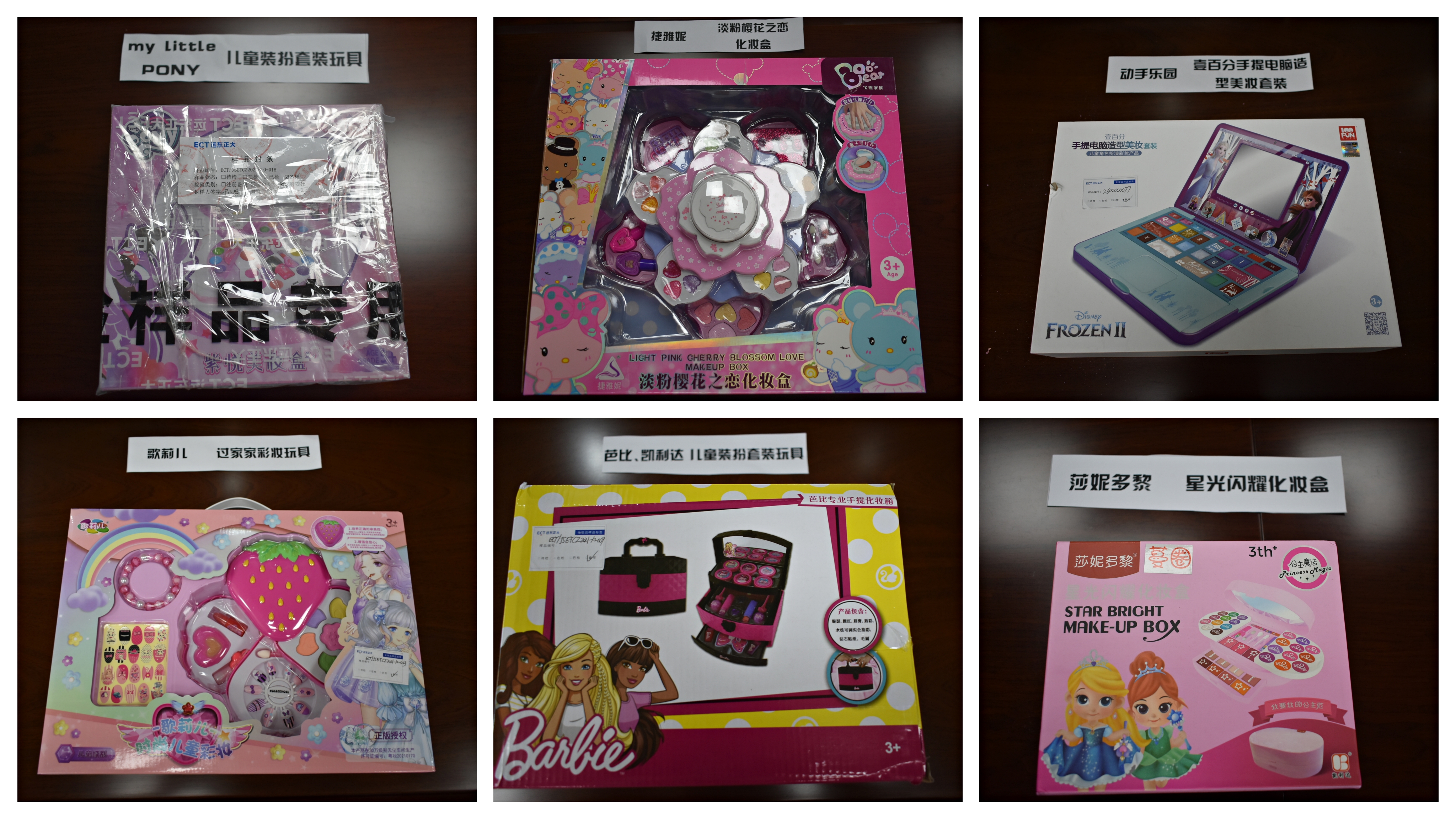 15款儿童彩妆样品。图片来源:江苏省消保委