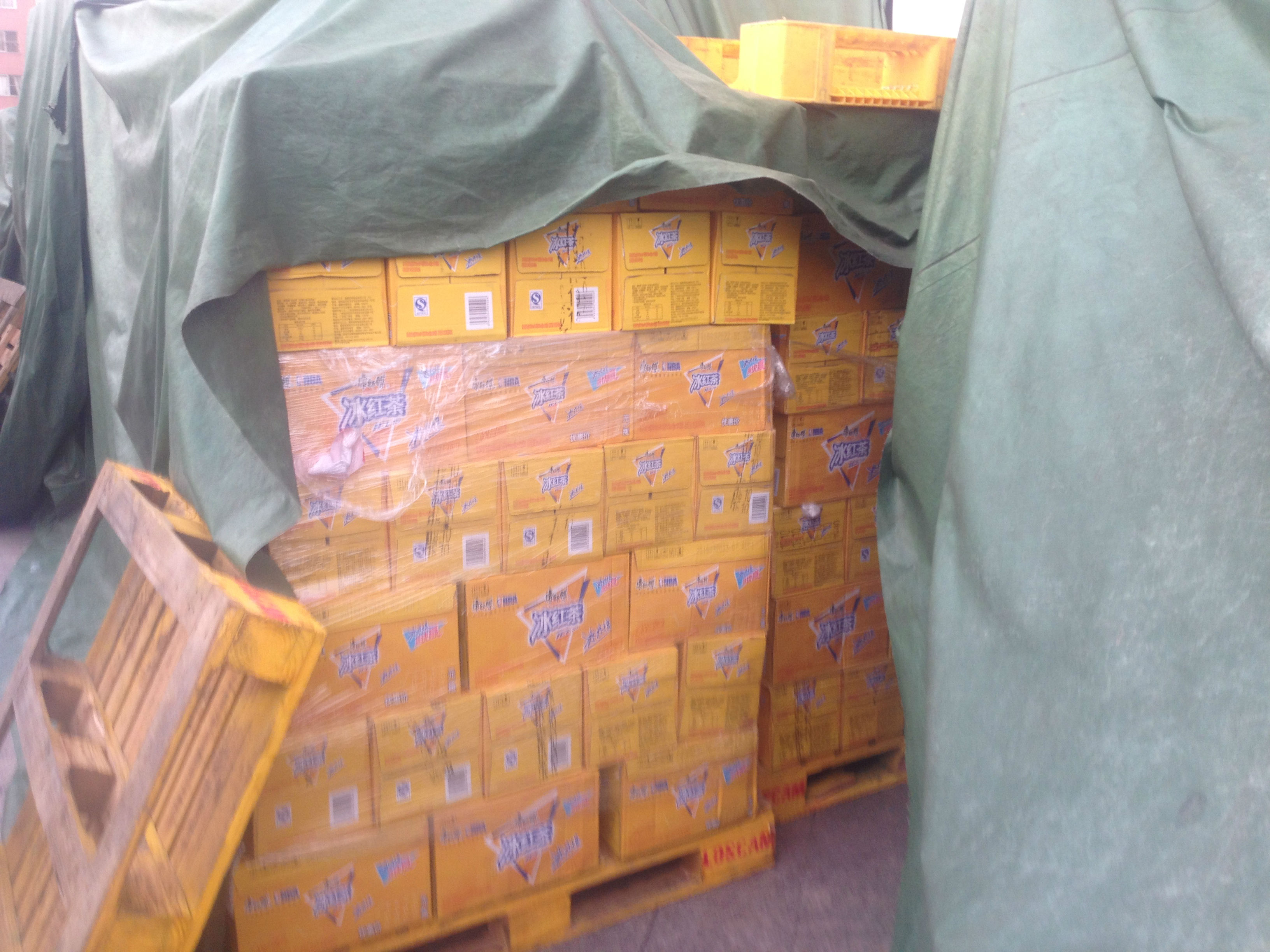 冰红茶也遭遇露天堆放待遇。张文章摄