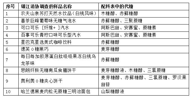 目前,消费者吃的无糖而又有甜味的食品大多添加了甜味剂,也就是“代糖”。顾名思义,“代糖”就是糖的替代品,属于食品添加剂,是依靠化学反应让大脑感觉到甜味。在镇江市消协调查的食品中,代糖普遍存在,且大部分食品中不止添加了一种代糖。