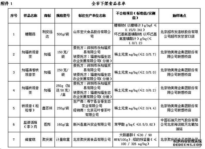 5月13日,北京市食品药品监督管理局公布了新一批不合格食品及保健品名单。在一共9批次产品中,有4批次的铁观音被检测出稀土含量超标,茶叶再次成为不合格榜单大户。 在名单中,4批次不合格铁观音全部来自北京物美超市联想桥店,分别是:标注福建知福生态农业发展有限公司生产的规格分别为150克/袋、250克/袋以及250g (加送50克) /盒的“知福”牌铁观音;标注寿宁县含香生态茶业有限公司生产的规格为250g/袋的“鑫百林”牌铁观音。上述产品检测出的稀土元素含量均超国家标准一倍以上。 值得注意的是,“知福”铁观音已是一个月内第三次登上黑榜。在4月15日和4月29日,“知福”牌共计5个批次产品被查出稀土超标,并被责令下架。 根据历史数据,早在去年8月和9月,该品牌就曾两次被查出稀土超标。整体来看,其在半年内已经5上黑榜。 据公开资料显示,自2011年至今,茶叶稀土超标事件时有发生,让消费者很是担心茶叶质量安全。据专家介绍,稀土是十多种化学元素的统称,茶叶中稀土超标与土壤和后期施加的农药化肥有关,过量摄入可能会给人体健康或体内代谢产生不良后果,包括影响大脑功能,加重肝肾负担,影响女性生育功能等。对于消费者来说,自行分辨茶叶稀土是否超标存在很大困难,因此消费者在购买茶叶时应尽量选择有信誉的商家。 另外,此次公布的不合格名单的保健食品中,标注哈药集团黑龙江同泰药业有限公司生产的“同泰”牌多种维生素钙片被检出维生素A含量仅为0.72mg/100g,远低于国家限制值6.1 mg/100g -12.2 mg/100g;标注北京航洋健康科技有限公司生产的“轩怡”牌盈康多维软胶囊未检测出微量元素硒,硒的国家限制值为2925.0μg/100g-4875.0μg/100g。 据悉,此次公布的不合格产品在流通领域已采取停止销售措施。 北京市食品药品监督管理局提醒消费者:凡已购买上述不合格批次产品的消费者可凭购物小票和外包装向销售单位要求退货。 来源:新华食品