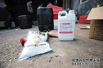 ■查抄无证作坊查出双氧水和工业火碱 老板对用途三改其口,称洗大肠、洗地面、洗车,“不会泡猪蹄” 9月5日,朝阳区食药监局食品药品稽查大队和北京市食品药品稽查总队、北京市公安局经侦总队、朝阳经侦支队及当地派出所的联合执法人员,对涉案加工作坊及摊位进行了查处,查扣了生猪蹄、双氧水、火碱、大红等大量原料,并立案调查。 两加工作坊均属无证黑窝点 据朝阳区食品药品监督管理局相关负责人表示,经现场检查发现,这两处生产窝点没有办理证照,是两家非法加工猪蹄作坊,加工的猪蹄主要销往朝来万通农贸综合批发市场。 朝阳区食药监局通报称,执法人员在这两处黑窝点,共查获未处理猪蹄2770公斤,以及火碱5公斤、双氧水1桶,肉类水分保持剂3袋3千克,食品添加剂(大红)600克,亚销酸钠18千克,焦糖色5桶12.5千克,二氧化氯1千克。据《中华人民共和国食品安全法》等法规规定,执法人员查扣了两个作坊的涉案原料,并立案调查。黑作坊水池中的水也被取样保存,并将进行相关检测。