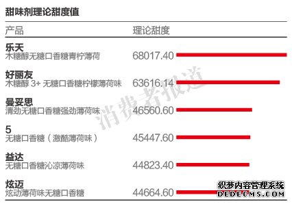根据中国食品工业协会糖果专业委员会专家认可,综合上述数据记者进行换算,6大口香糖的理论甜度如下: