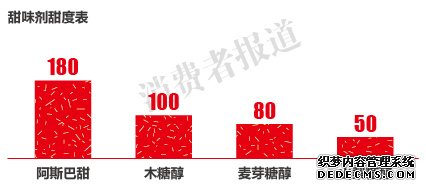 (注:理论甜度,即将每种甜味剂的相对甜度与含量相乘,最后将所有甜味剂的总甜度相加。考虑到甜味剂之间的协同效应和少量微量甜味剂的计量误差,上表误差率在±2.5%左右。) 从量化后的结果来看,乐天的理论甜度值相对最高,而好丽友紧随其后。其他4款口香糖的甜度相对集中且相差不大,炫迈的理论甜度值相对最低。甜味剂或成美丽误会但甜度是不是越高越好呢? 中国食品工业协会糖果专业委员会秘书处刘雨芳主任在分析该结果时谈到:“不同的甜味剂组合除了带来不同甜度外,还带来不同的消费体验,如因不同糖醇溶解时吸热不同,糖醇复配组合可产生不同的清新、爽快的口感。商家根据产品的稳定性、胶基特点和消费者喜好等多方面的因素选择添加的甜味剂种类,确定添加比例,消费者可根据个人口味喜好进行选择。” 从此次检测结果来看,市面上的口香糖均添加了“阿斯巴甜(含苯丙氨酸)”的人工甜味剂,且所有含阿斯巴甜的口香糖,其添加量都稳定在3.5g/kg左右。而其他甜味剂含量却参差不齐。而记者通过市场调查发现,目前山梨糖醇价格约为¥3500/吨,麦芽糖醇价格约为¥4800/吨,木糖醇¥7000/吨,而阿斯巴甜的价格达到¥130000/吨,远高其他糖醇的价格。 为何此款高价甜味剂如此受青睐?资料显示,阿斯巴甜的甜度是一般糖类的约200倍,同时也具备其他糖醇不致龋齿,甜味纯正,不引起血糖明显升高,适合糖尿病患者食等优点。 欧盟食品科学委员会(ECSCF)限定阿斯巴甜日容许摄入量为40毫克每千克体重,美国疾病控制与预防中心(CDC)则限定为50毫克每千克体重。实践中不乏对阿斯巴甜可致脑瘤和致癌的质疑,美国FDA也曾一度禁止阿斯巴甜的使用。此外,由于阿斯巴甜含苯丙氨酸,会影响苯丙酮尿症患者。 炫迈制造商亿滋中国区事务经理杨明钊(原卡夫食品中国)表示阿斯巴甜只是在允许合规的范围内提供给消费者不同口味的体验,他不是危险物不是违禁物,不会对食品安全产生负面影响。 此外,资料显示,过量食用木糖醇可能引起腹胀、腹泻。临床实践表明过多食用木糖醇,血中甘油三酯升高,会引起冠状动脉粥样硬化,糖尿病人不宜过多食用。同样,入食过量的山梨糖醇也会引起一些肠胃问题,如肠胃痛、胀气和程度不同的腹泻。 “甜淡”是主观感受,甜度数据只能在一定程度上给消费者选购进行参考。甜味剂甜度高、热量低、不易发生龋齿、不易被人体吸收等特点,实在是众多吃货的福音,也是糖尿病和肥胖患者的救命稻草。但甜味剂本身的缺陷也需要消费者尤其是糖尿病患者的注意,切莫以为甜味剂是完美甜蜜。 对此,中山大学公共卫生学院营养系教授蒋卓勤表示:“我个人是不支持多吃含甜味剂的食品的,他们本身没有营养,而阿斯巴甜我更是建议大家少吃。这是一种人工合成的甜味剂,它虽然足够甜,却无法排除化学合成带来的健康隐患。” “经常吃甜味剂,人就会感觉吃一般糖的时候,糖甜度下降了,同时也混淆了人对食物热量的感觉,饭吃的反而更多了。所以从心理上讲,食品饮料里的甜味剂对减肥是没有好处的。”科学松鼠会青方在《甜味剂真的安全吗?不一定吧!》一文里提出这样的观点。