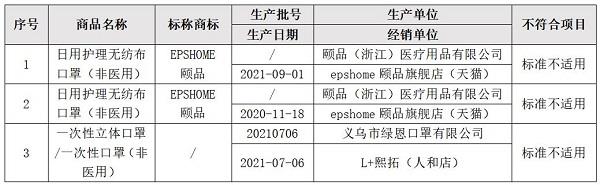 此外,有3款样品明示标准为GB/T32610-2016《日常防护型口罩技术规范》,而该标准明确规定不适用于婴幼儿、儿童呼吸防护用品(详见表2)。