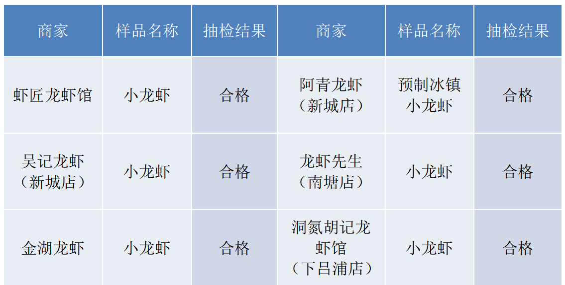 本次活动,温州市市场监管局专项抽检行动共抽检小龙虾16批次,对其恩诺沙星、镉、孔雀石绿、氯霉素、呋喃唑酮代谢物、呋喃妥因代谢物、土霉素/金霉素/四环素(组合含量)、五氯酚酸钠(以五氯酚计)等项目进行检测,所检项目均合格。