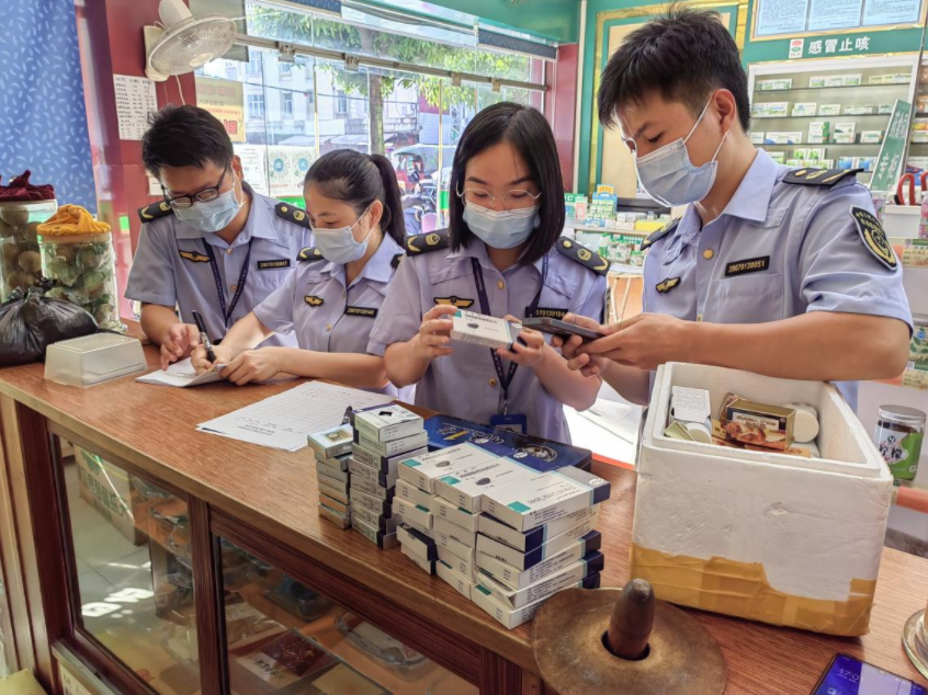 日前,灵山县市场监管局先后接到两名男子的投诉举报称,他们在灵山县两家药店购买的“伟哥”产品外包装上全是英文,另一种“中药伟哥”,外包装上没有药品或者保健食品的批准文号,两位男子怀疑购买到的是假药,要求市场监管部门核查处理。
