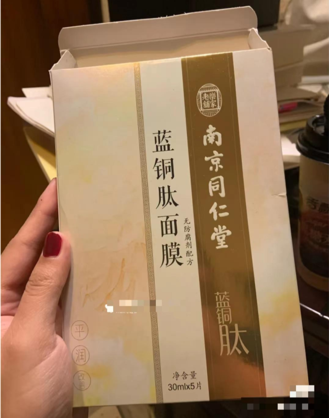 含有激素的南京同仁堂蓝铜肽面膜的包装。资料图片