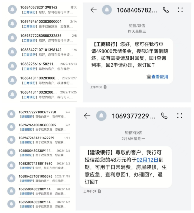 上海市消保委披露称,以消费者反映较多的标注“工商银行”和“建设银行”的贷款类短信为例,竟然没有一条是真的。