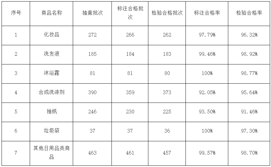 此次抽查定量包装商品的净含量标注抽样合格率为97.60%,同比提高1个百分点;净含量检验抽样合格率为94.93%,同比下降0.8个百分点。定量包装商品净含量标注合格情况总体好于净含量检验合格情况。