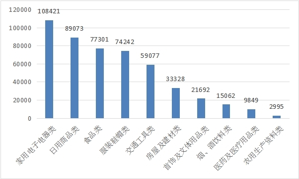 家用电子电器类、日用商品类、食品类、服装鞋帽类和交通工具类投诉量居商品投诉的前五位。与2020年相比,日用杂品、服装、计算机类产品同比增长较大。