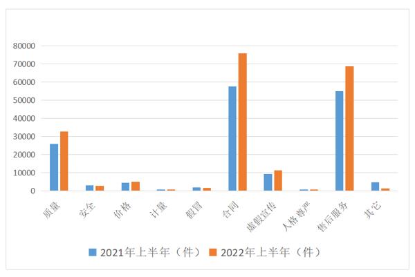 2021年、2022年上半年投诉性质对比图。数据来源:广东省消委会