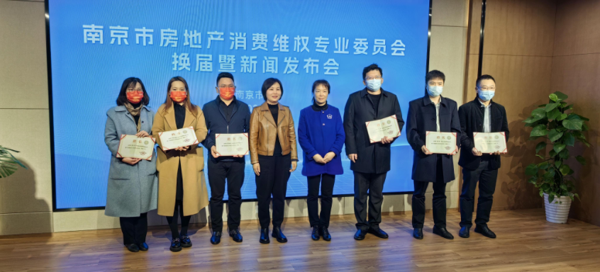 此次南京市消协房产专委会换届大会上,南京市市场监管局副局长施冬咏、市消协副会长兼秘书长蒋岩坚向专委会委员授聘书,副局长施冬咏向“365淘房”授予消费维权投诉站牌匾。