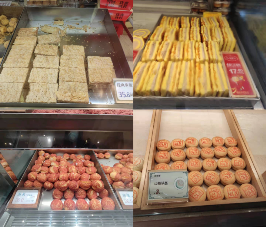 福建省、福州市消委会工作人员会同福州海关技术中心相关专业人员以普通消费者身份在福州市大型商贸综合体、商业街、学校周边等进行样品采样,购买包括“江南酥匠”“未芝点心局”“汪保来”“百饼园”“鲍师傅糕点”等12家“新式点心”商铺,共计36款样品。购买后立即交福州海关技术中心相关专业人员冷藏保存,并在4小时内送福州海关技术中心委托检测,对菌落总数、大肠菌群、霉菌、反式脂肪酸、能量、碳水化合物、蛋白质、脂肪、总糖、果糖、糖精钠、山梨酸及其钾盐、苯甲酸及其钠盐等13个项目进行检测。