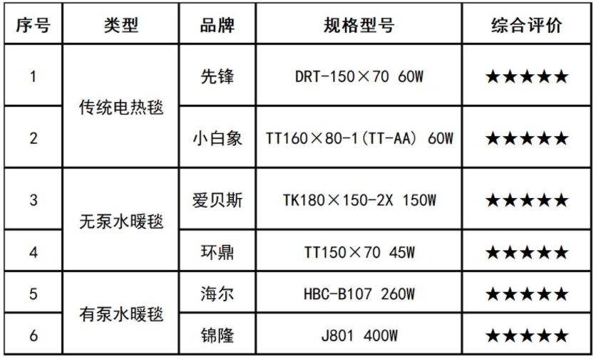 每当天冷的时候,电热毯都会走进消费者的视野,你会选择传统电热毯还是水暖电热毯呢?为了帮助消费者了解二者的具体情况、更好地进行选购和使用,近日,上海市消费者权益保护委员会对18款电热毯开展了比较试验。结果显示,海尔水暖毯等6款样品综合评价较高,获得5星(更多样品情况见附件);黛圣婕无泵水暖毯、奥克斯无泵水暖毯以及智诺有泵水暖毯不符合国家相关标准要求。