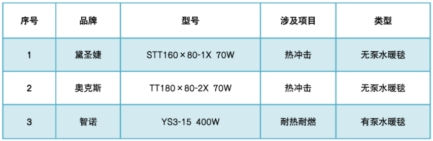 3款水暖毯样品电气安全不合格