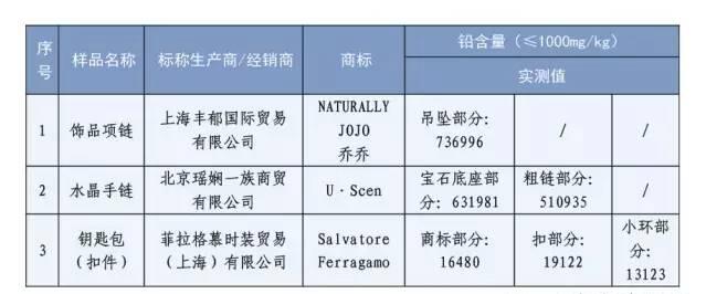 此外,本次试验中还发现,部分商品在销售时无任何标识,包括产品名称、生产企业名称和地址,所含主要成份的名称和含量等,侵害了消费者的知情权,也给消费者维护自身权益带来困难。消费提示购买时应当注意产品的材质和成分。皮肤敏感的人需谨慎选购和佩戴。不宜清洗,经常接触刺激性液体(如浴液、汗液、香水)会加速氧化,洗澡、游泳时请勿佩戴。