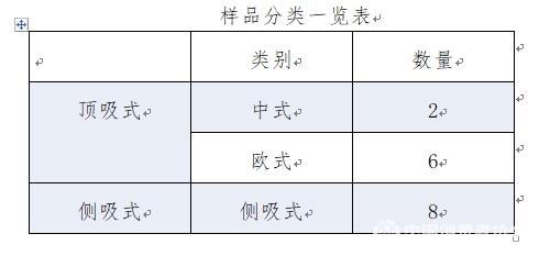 本次吸油烟机比较试验还首次引入消费者现场体验,并把体验数据作为比较试验的一部分,目的在于给消费者提供更丰富的更贴近日常生活使用的价值信息,给消费者在选购吸油烟机产品和日常使用中提供指导。本次比较试验安全和性能测试,委托中国家用电器检测所完成,吸油烟机的消费者体验委托中国标准化研究院实验中心人类工效学实验室完成。体验评价一览表