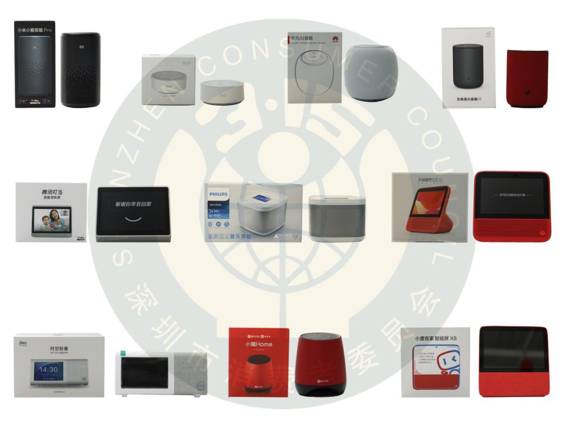 这次比较试验样品选择参考消费情况调查结果以及各大电商平台消费者关注度高、销量好的智能音箱,样品均为工作人员在各电商平台以消费者名义购买,共计10款样品,其中带屏幕的有5款,不带屏幕的5款,涉及品牌有:天猫精灵、小度、腾讯叮当、苏宁极物、华为、喜马拉雅、小米、京东京鱼座、Yeelight(易来)、飞利浦。