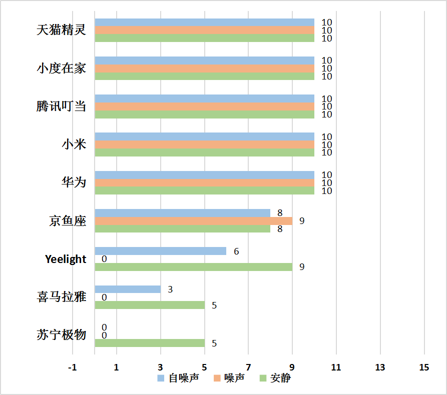智能音箱又称AI音箱,其与普通音箱的区别在于AI语音交互功能,因此这次比较试验性能部分的测试选取了远场语音唤醒、误唤醒、远场语音识别以及语音交互响应速度四个维度对智能音箱的性能进行评估。