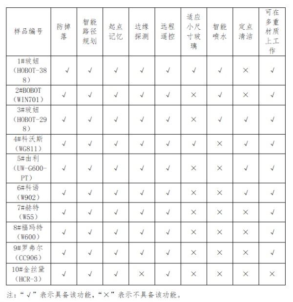 本次比较试验从消费者关心的角度出发,结合擦窗机器人工作特点,对样品的9项性能指标进行测试和比较。