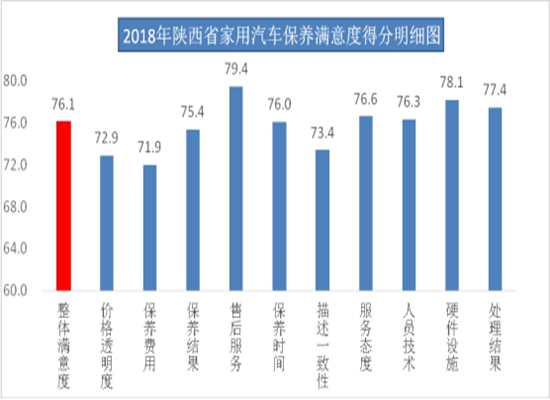 4、汽车保养效果难尽如人意。调查发现,汽车保养结果与保养人员描述一致性满意度得分偏低,仅为73.4分。11.37%的消费者表示遇到过保养结果与服务承诺不一致的情况。分析原因,一是在保养过程中,选用的配件存在质量问题。在实际调查中,48.72%的消费者表示遇到过配件以次充好的问题;47.44%的消费者表示遇到过冒充进口配件的事情;27.26%的消费者表示遇到过配件偷工减料的现象。二是存在质量问题的汽车配件在市场中依然存在。在《陕西省机动车维修管理规定实施细则》颁布实施后,汽车维修行业的正规配件使用情况日趋转好,但调查反映仍然存在问题配件在市场流通现象。