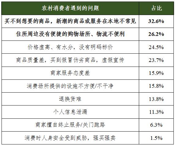 在问及农村消费者本地消费遇到的问题时,“买不到想要的商品,新潮的商品”或“服务在本地不常见”是普遍答案。不难看出,随着生活水平不断提高,农村消费者已逐渐不满足于当前的基础供给,需要高质量的供给来满足部分农村消费者的个性化、高品质需求。
