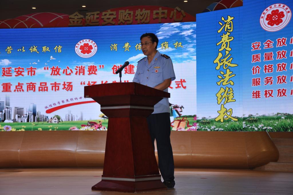 为推进“放心消费”创建工作的深入开展,营造良好的消费环境,满足人民群众生产生活需要,延安市政府把放心消费创建工作作为各级市场监管部门转变政府职能、规范市场秩序的一项重要举措。通过落实市场“场长制”,明确工作责任,狠抓工作落实。6月21日,组织召开了延安市“放心消费”创建工作推进会暨重点商品市场“场长制”启动仪式。