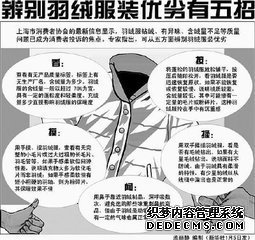 •         随着寒冷冬季的到来,羽绒服饰已渐渐进入人们消费的视野,面对市场上琳琅满目的羽绒制品,消费者该如何抉择?现提醒您注意以下几方面:一、选择正规的实体店购…