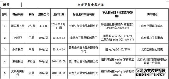 北京市食药监局今日通报5种不合格食品全市下架停售,其中,“吉晟”火锅专用粉条、四川靠山王食品有限公司生产的蕨根粉丝被检出铝残留,按照标准铝在该类物质…