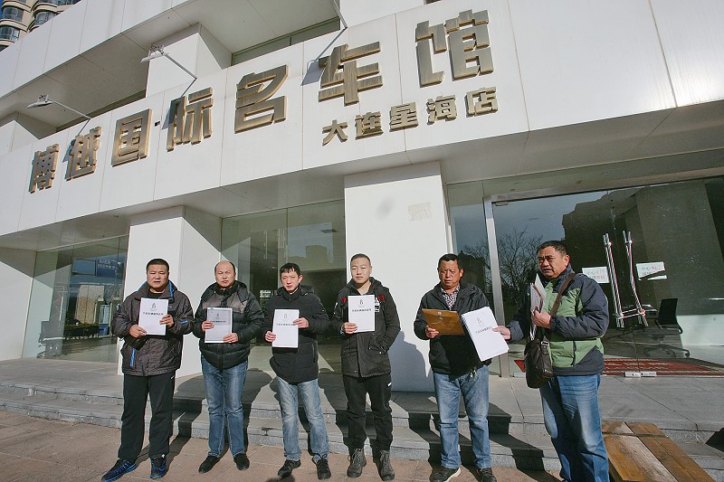 车主到博越国际名车馆大连星海店讨要说法,他们手中都有合同。