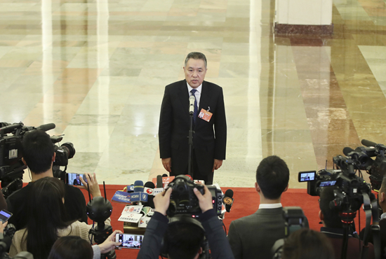 国家市场监督管理总局局长张茅在“部长通道”接受采访。